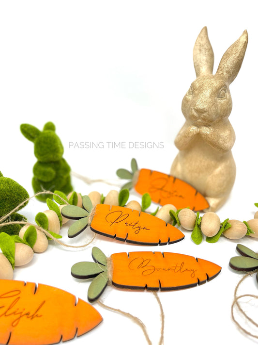 Engraved personalized wood carrot Easter basket tags (1 piece)