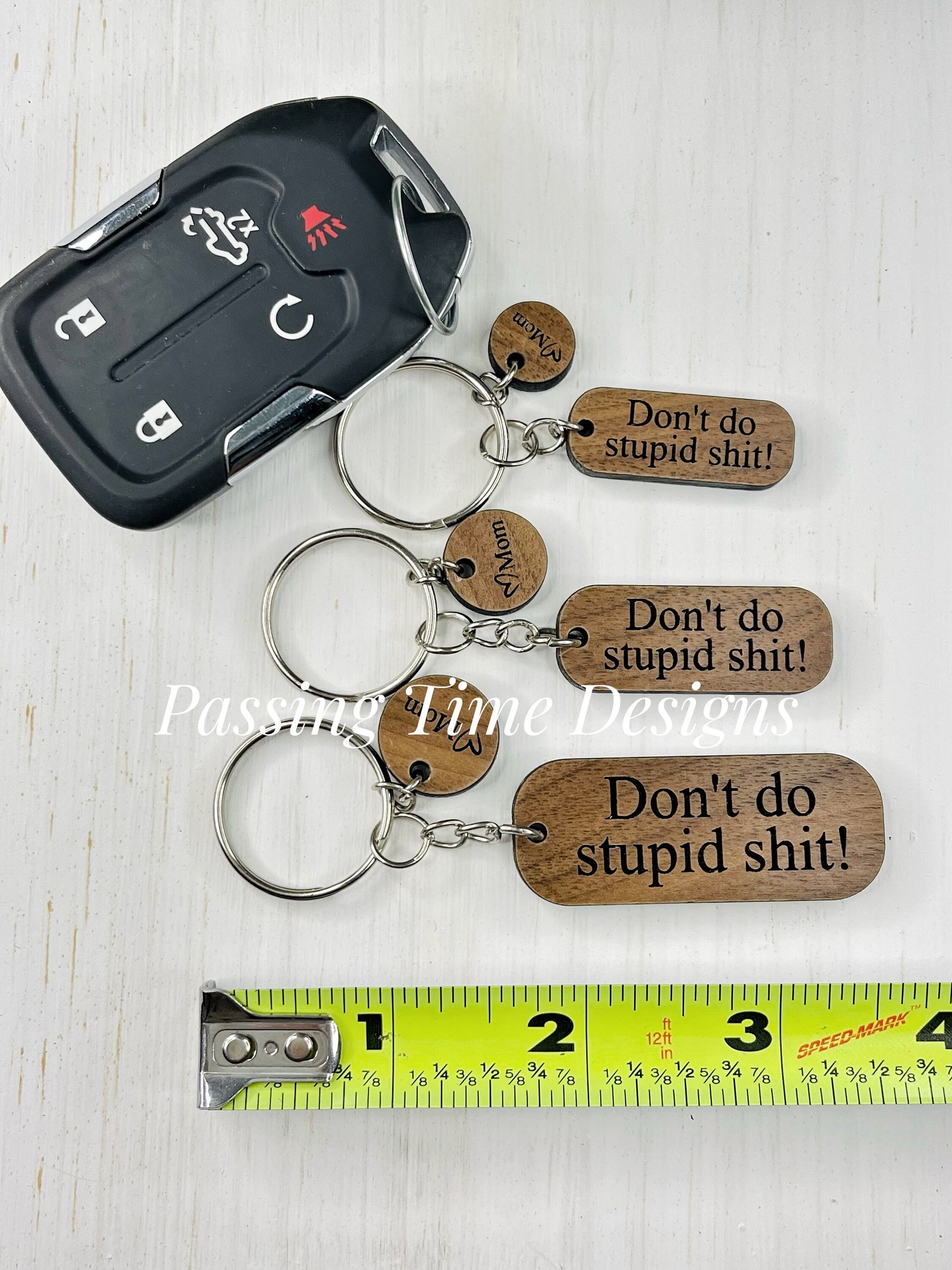 Have a child, family member, or spouse that might not always make the best decisions? Remind them not to do stupid sh*t. This funny keychain will give them a good laugh and a reminder.