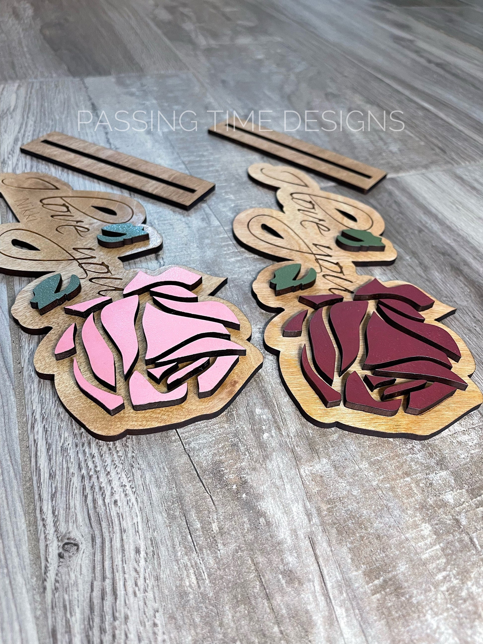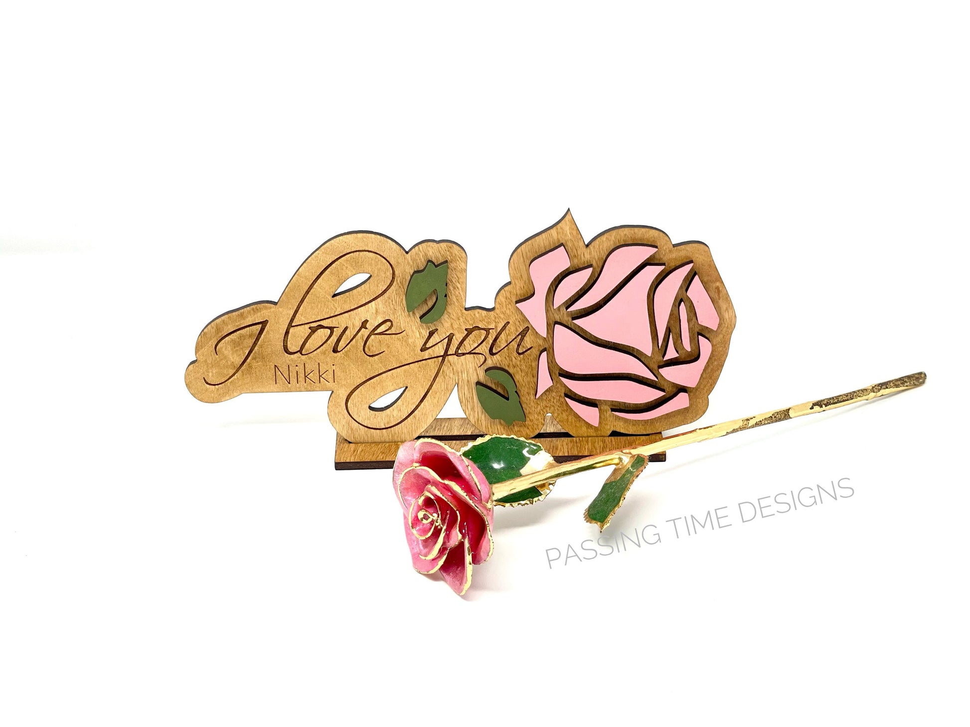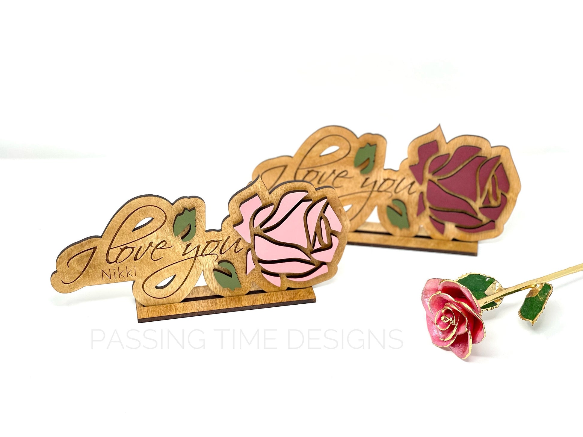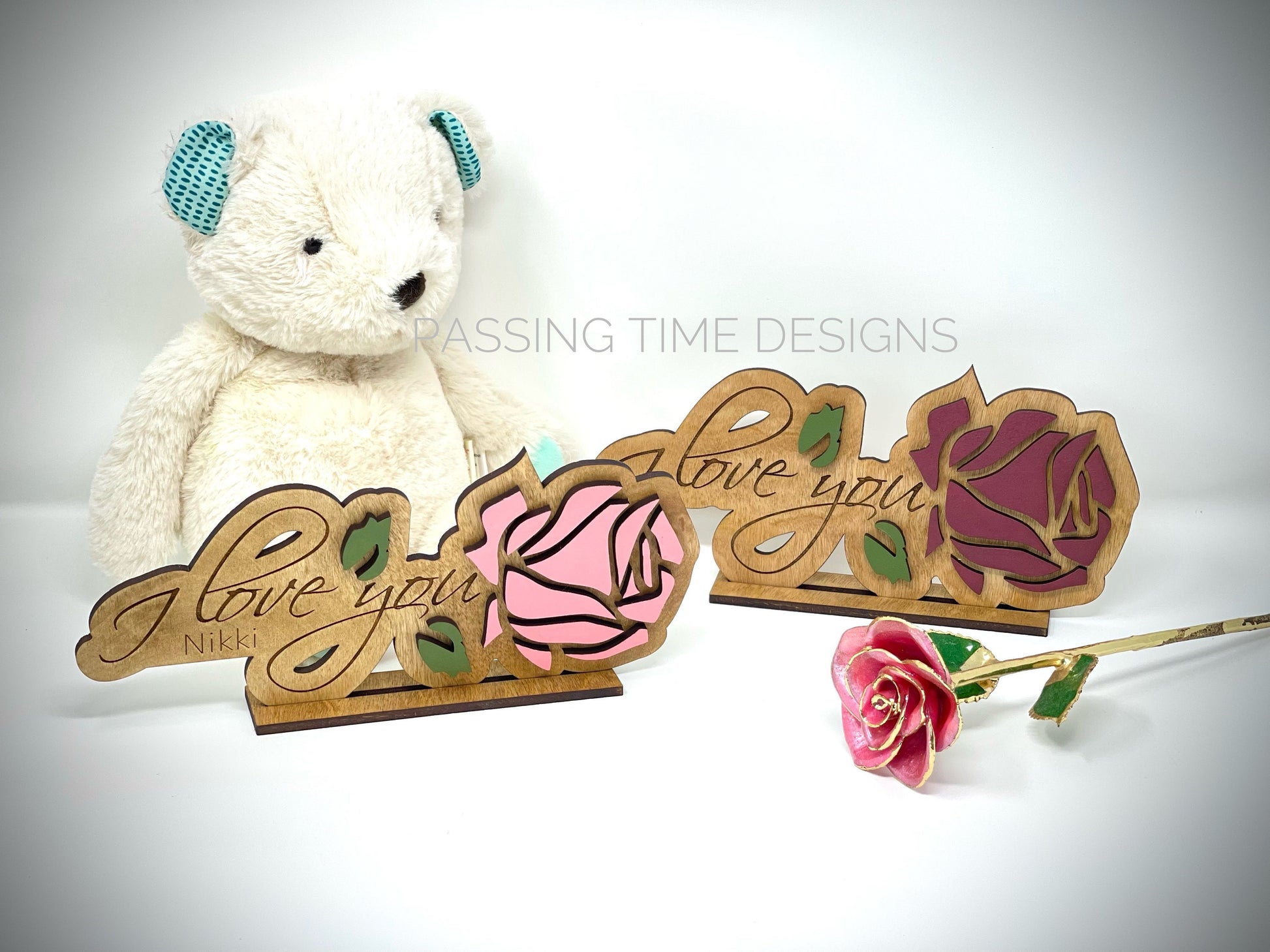 This wooden 3D " I love you rose" makes a perfect gift for Mother's Day, Valentines Day, Birthday, Anniversary, and so much more! It comes with the stand so no need to hang. Fits perfect on most nightstand or end tables, to remind your loved one that you love them every single day.