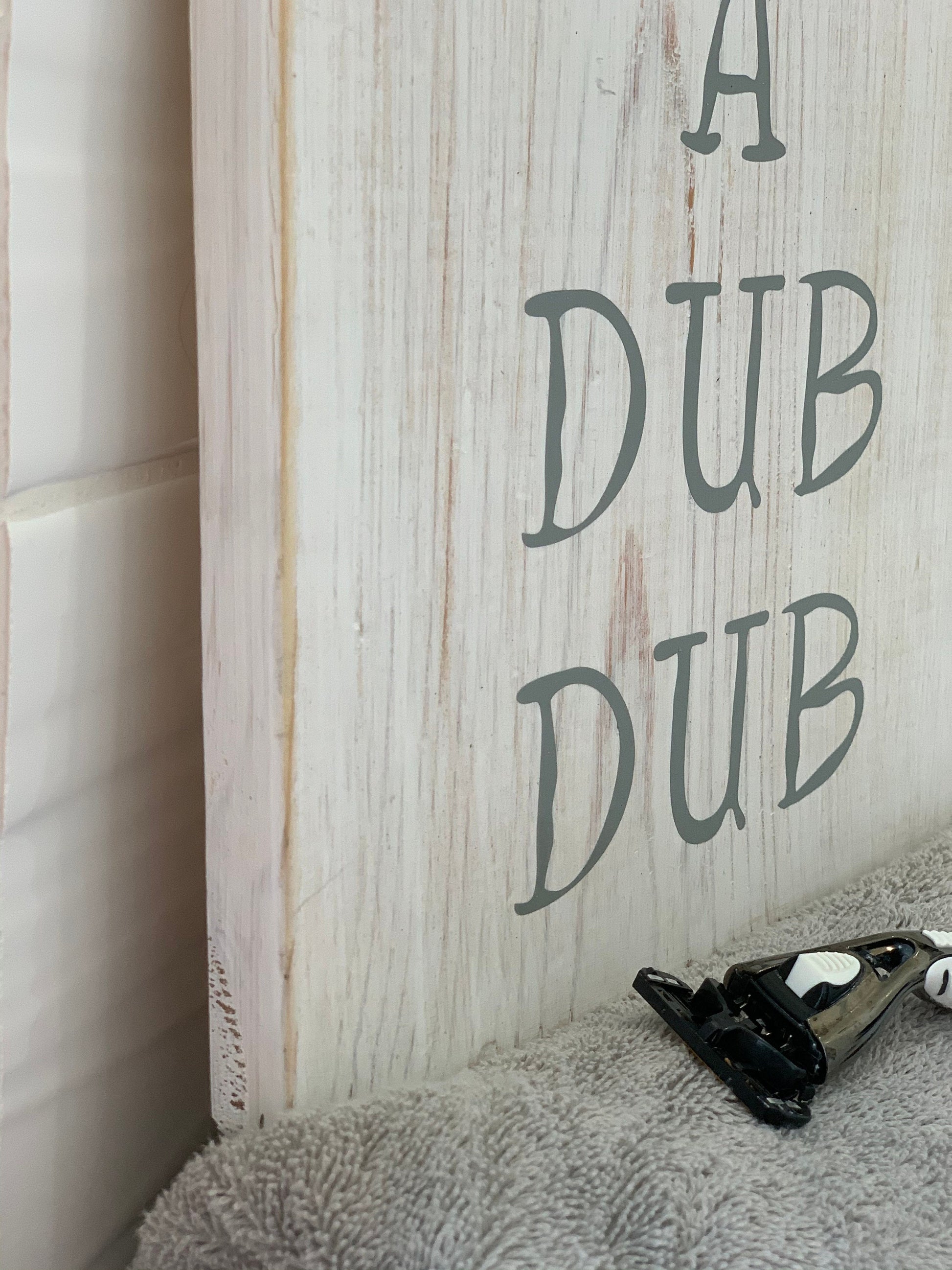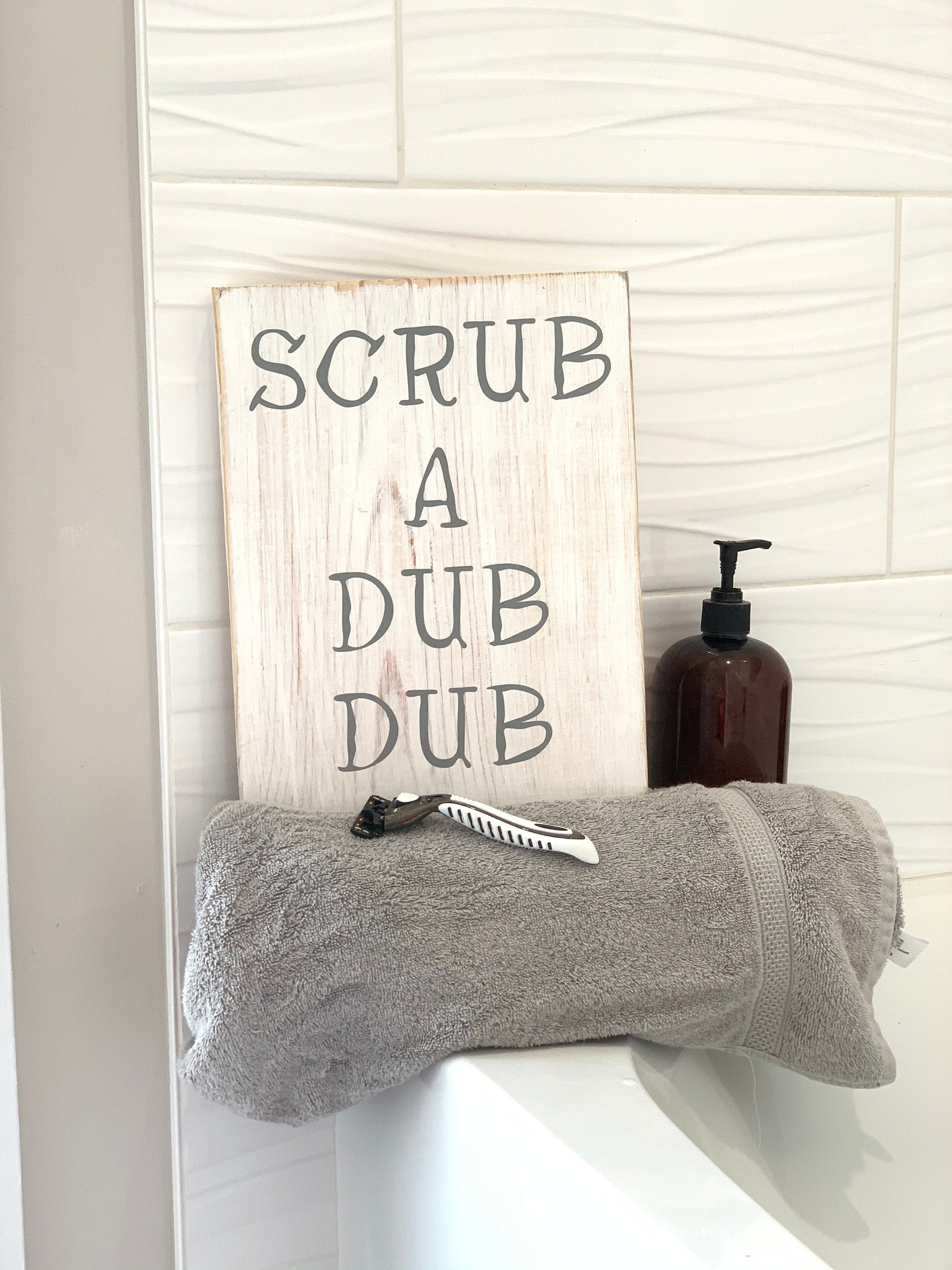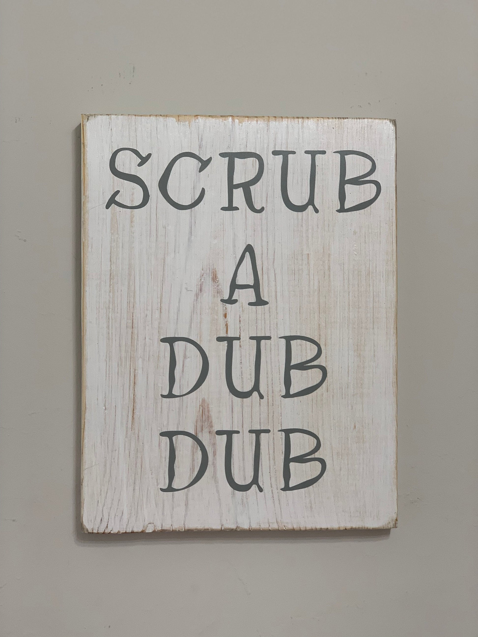 This farmhouse bathroom sign is handmade of wood. It makes a great conversational piece, and goes well with any decor.