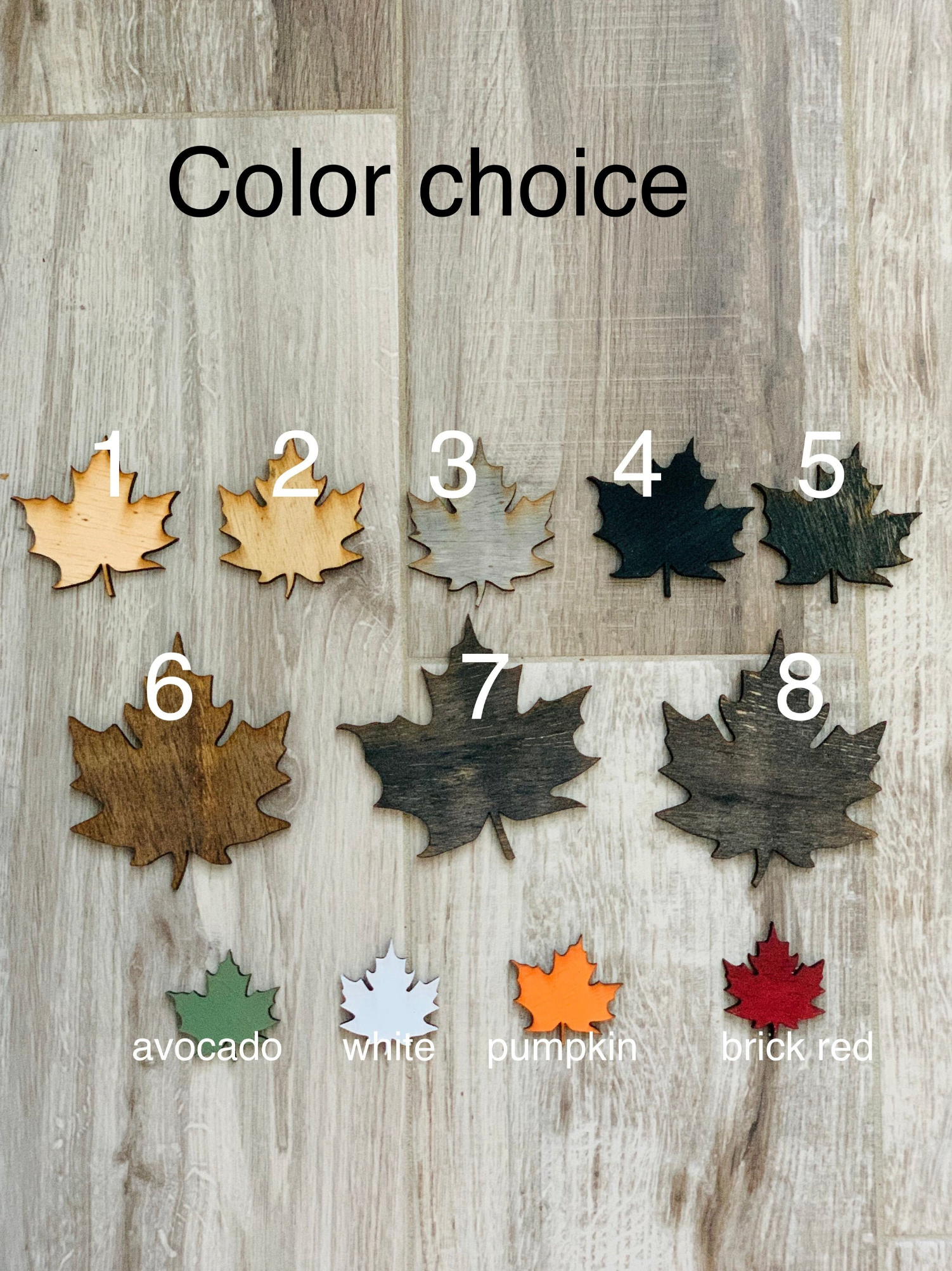 -In the personalization section (ONLY if you chose painted/stained) please note the color of each leaf.