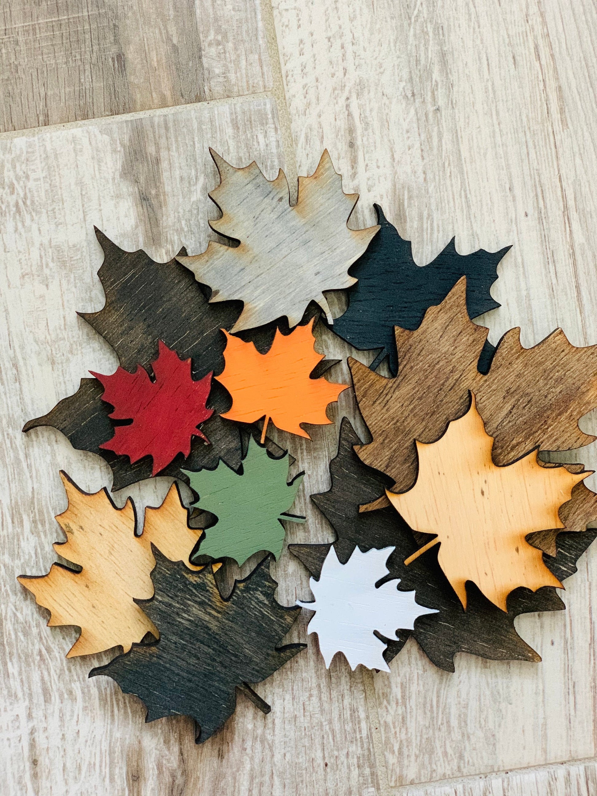 -Please choose the SET AMOUNT (how many leaves in the set) and the STYLE: (Painted/stained) or (No color DIY cutout only)