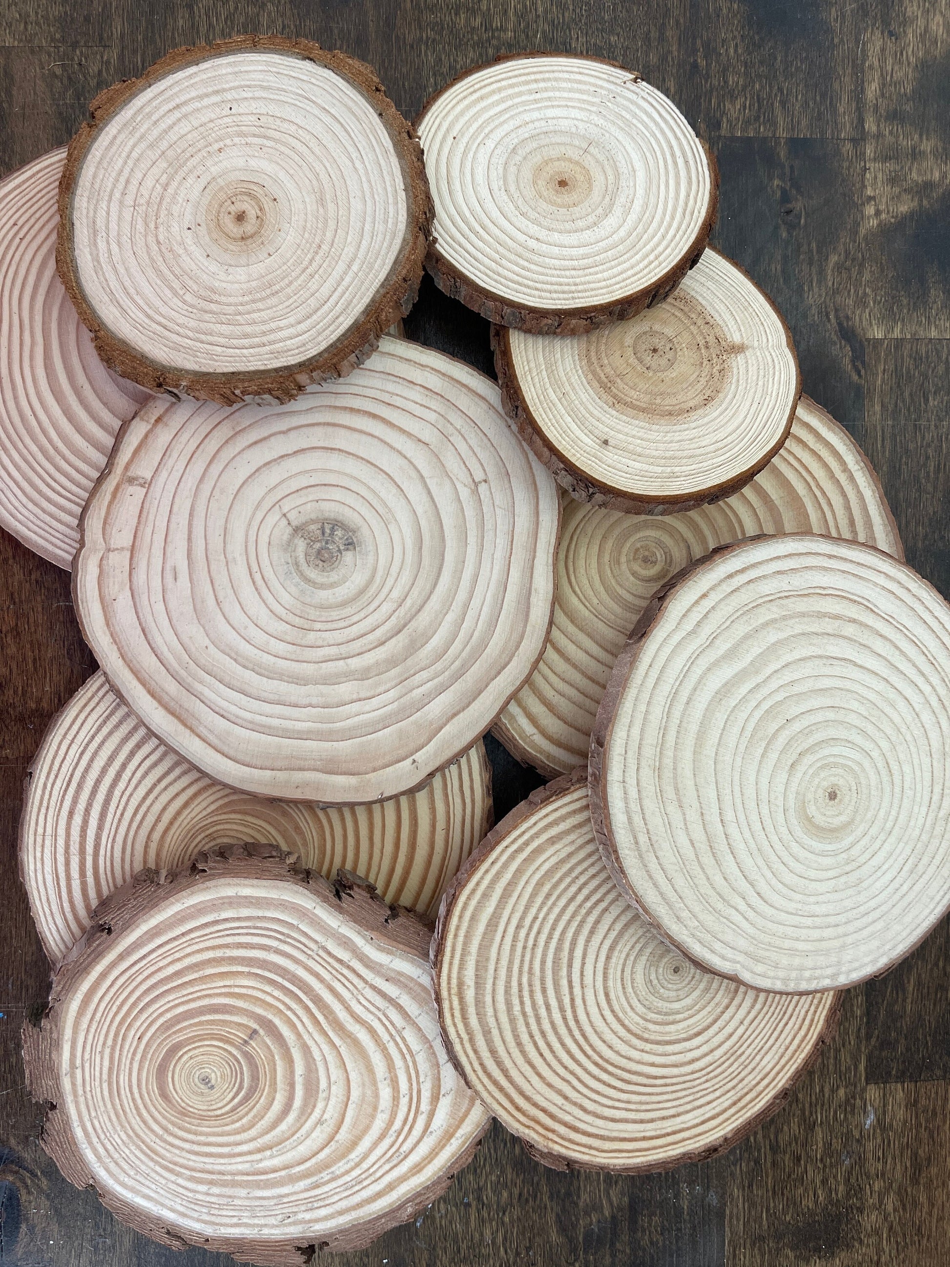 No two pieces of wood are the same, some have more or less bark around the edges, some have more or less lines throughout, some are lighter and darker, see last photo in listing to see how they can vary.